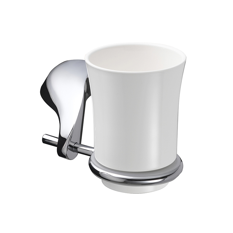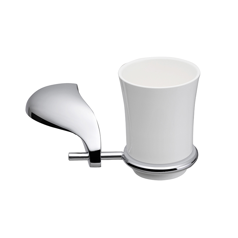 Cốc đánh răng bằng nhựa màu trắng, có giá đỡ bằng kẽm mạ crom, loại KH-527S-4, kích thước 176*73*52mm, nhãn hiệu: Krene, hàng mới 100%