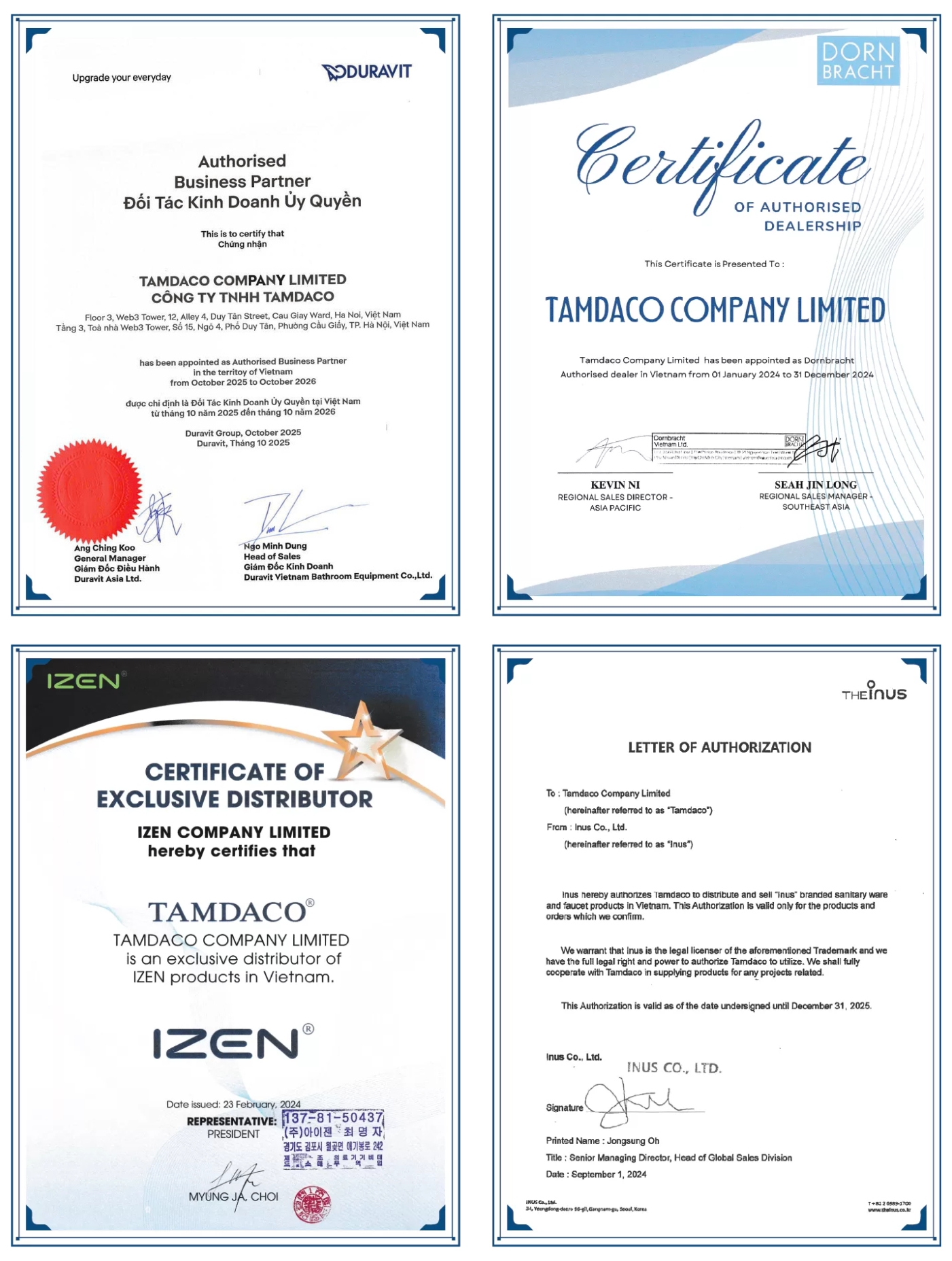 CÔNG TY TNHH TAMDACO là Nhà phân phối chính hãng hàng đầu tại Việt Nam chuyên phân phối thiết bị vệ sinh cao cấp của DURAVIT – ĐỨC TẠI VIỆT NAM, NHÀ PHÂN PHỐI ĐỘC QUYỀN NẮP RỬA ĐIỆN TỬ IZEN – HÀN QUỐC, PHỤ KIỆN BUMHAN – HÀN QUỐC, NHÀ PHÂN PHỐI CHÍNH THỨC BỒN TẮM KALDEWEI,…